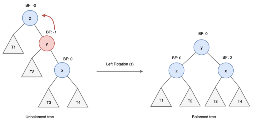 - Balance Factor가 1보다 커지면 회전(rotation)을 통해 균형을 잡는다.