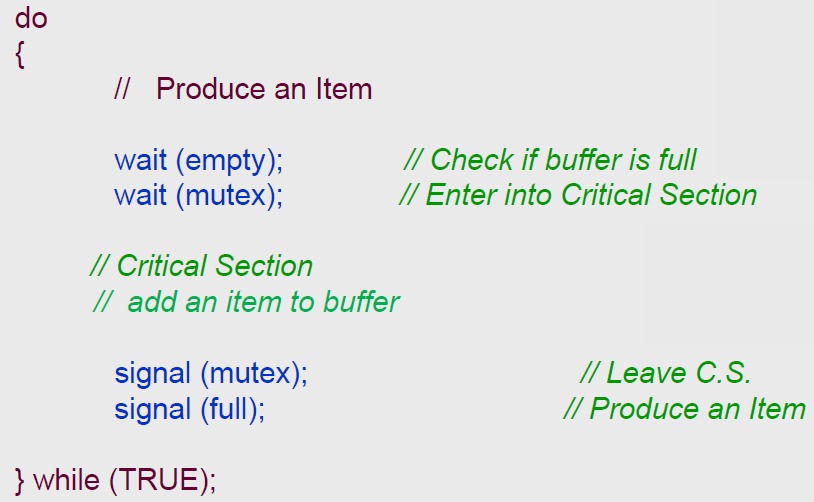 - Semaphore empty = N → buffer 안의 빈 슬롯 수