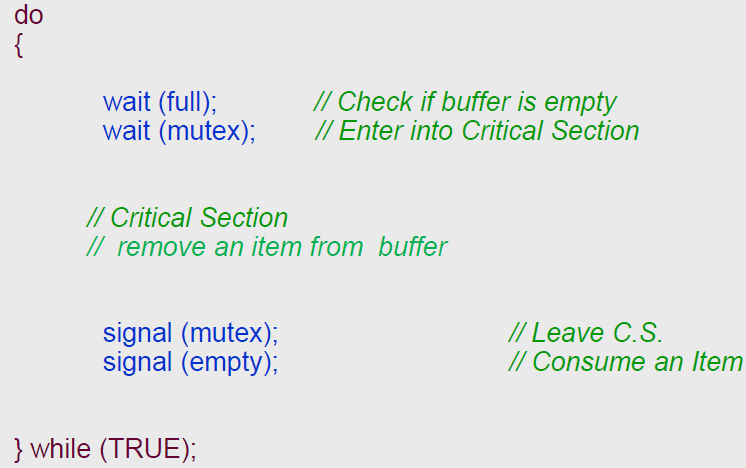 - Semaphore full = 0 → buffer 안의 아이템의 수