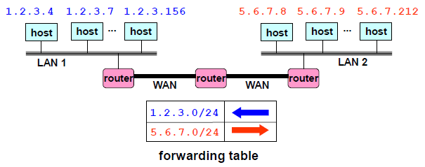 👉 즉, forwarding table이 작아져 메모리 낭비와 검색 시간을 최소화할 수 있다.