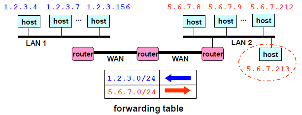 만약 이전처럼 라우터가 모든 호스트의 IP 주소를 가지고 있어야 된다면 새로운 호스트가 추가되었을 때 라우터의 forwarding table은 업데이트되어야 할 것이다.