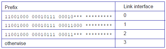 어느 라우터의 forwarding table이 다음과 같이 정의되어 있다고 가정해보자.