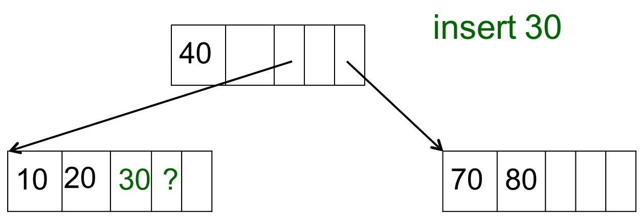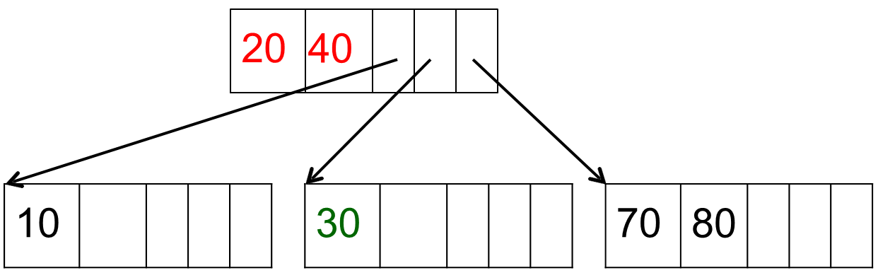 3 노드가 2개의 2 노드로 분리된다. 가장 작은 데이터는 왼쪽 2 노드, 가장 큰 데이터는 오른쪽 2 노드, 중간 데이터는 부모 노드로 간다. 이때 만약 부모 노드도 3 노드라면 계속해서 분리된다.
