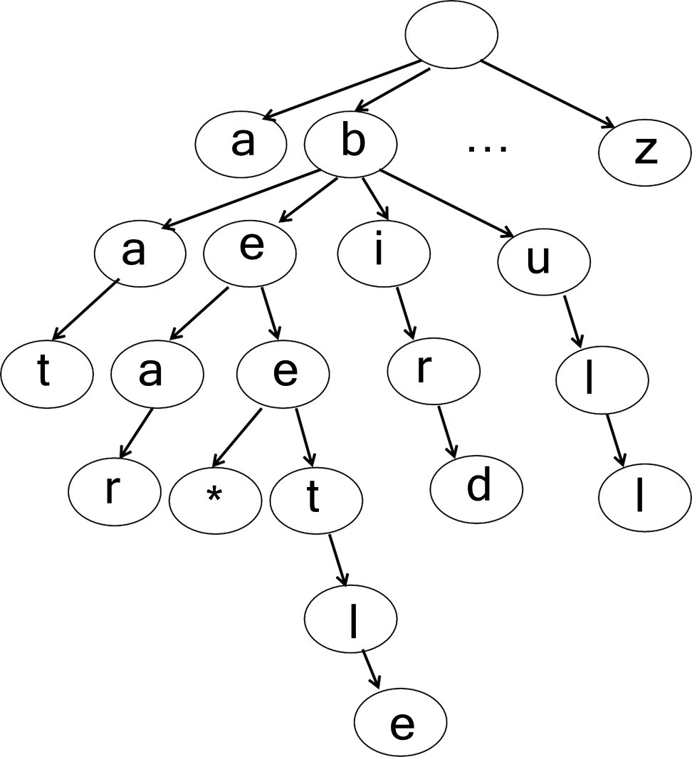 사전의 단어 저장, 텍스트 자동 완성, 스펠링 체크 등에 주로 사용된다.