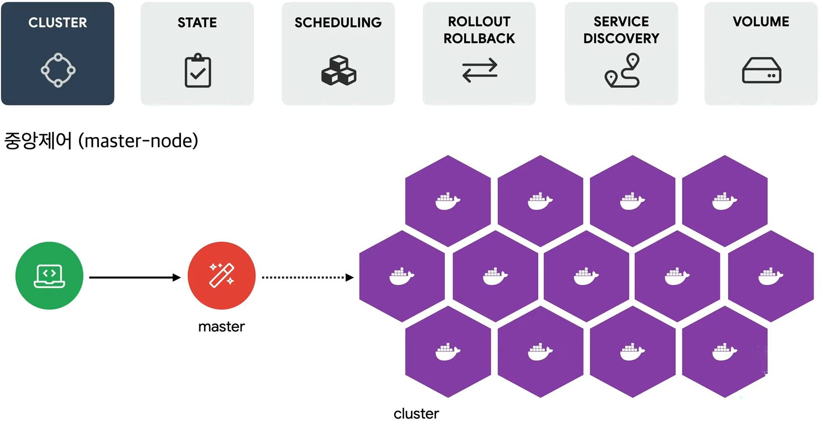 - 노드별로 관리하는 것이 아닌 마스터 노드를 통해 클러스터 관리