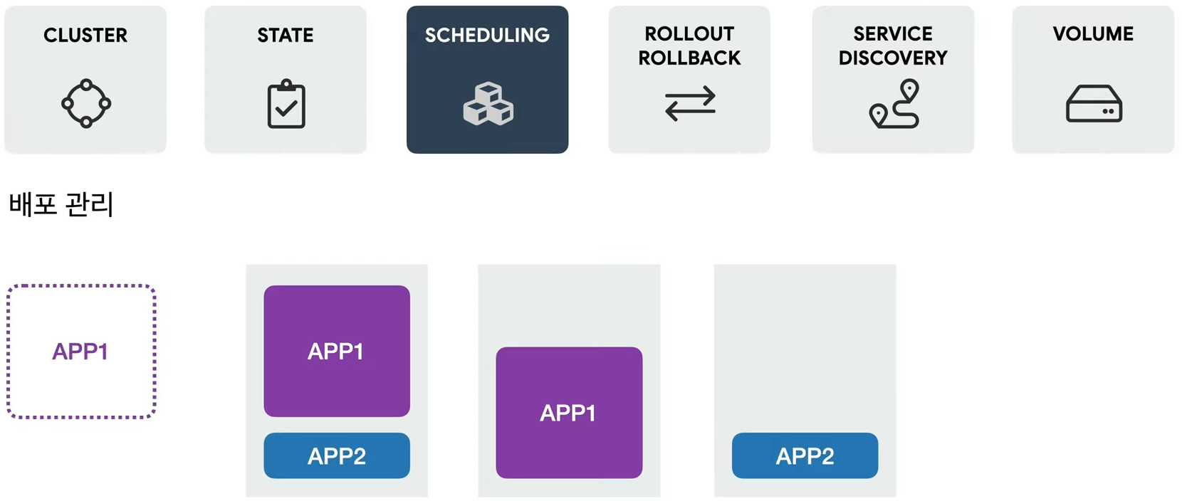 출처: https://www.youtube.com/watch?v=Ia8IfowgU7s&list=PLIUCBpK1dpsNf1m-2kiosmfn2nXfljQgb&index=2 - 유휴(idle) 리소스를 관리하여 새로운 컨테이너 생성 시 알맞은 서버에 배치 시킬 수 있음