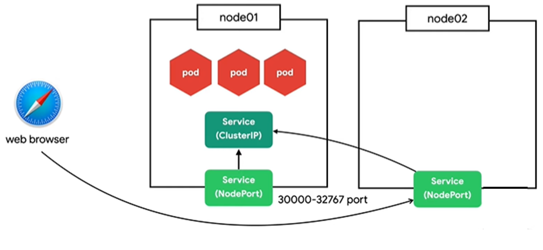 출처: https://www.youtube.com/watch?v=-gIyfII5eak&list=PLIUCBpK1dpsNf1m-2kiosmfn2nXfljQgb&index=7 - 노드(host)에 노출되어 외부에서 접근 가능한 서비스