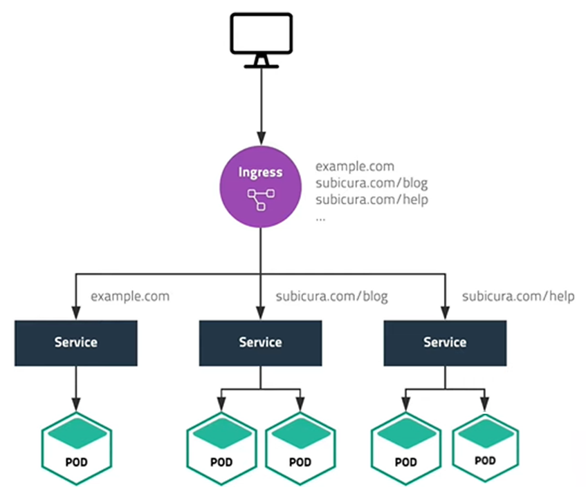 출처: https://www.youtube.com/watch?v=-gIyfII5eak&list=PLIUCBpK1dpsNf1m-2kiosmfn2nXfljQgb&index=7 - 도메인 또는 경로별 내부의 ClusterIP를 연결하여 라우팅