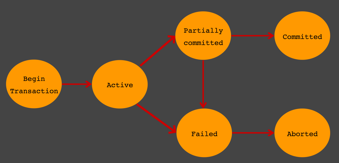 Commit 요청이 들어오면 Partial Commited 상태가 된다. 이후 Commit을 문제없이 수행할 수 있으면 Committed 상태로 전이되고, 만약 오류가 발생하면 Failed 상태가 된다.