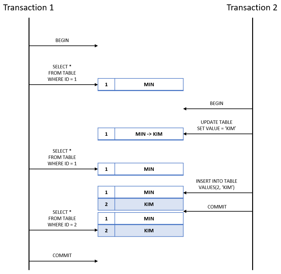 - 데이터 추가/삭제에서의 Isolation을 보장하지 못해 Phantom read가 발생할 수 있다.