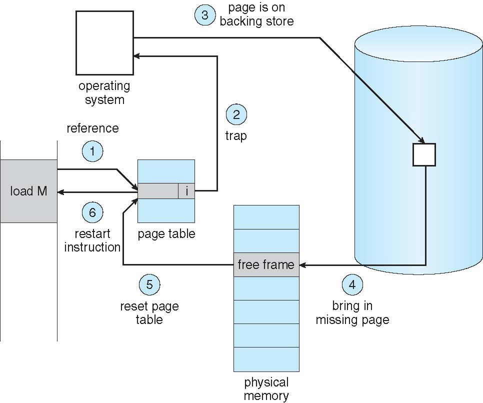 page fault가 발생하면 OS에게 trap(software interrupt)을 발생시키고, OS는 page fault를 처리해야 한다.OS가 page fault를 처리하는 방법