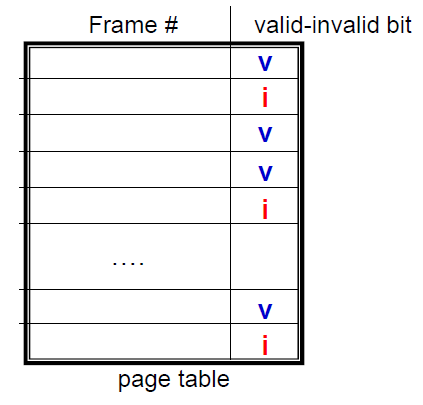 Valid-Invalid bit 각 프로세스의 page table에는 valid-invalid bit를 가지고 있다.